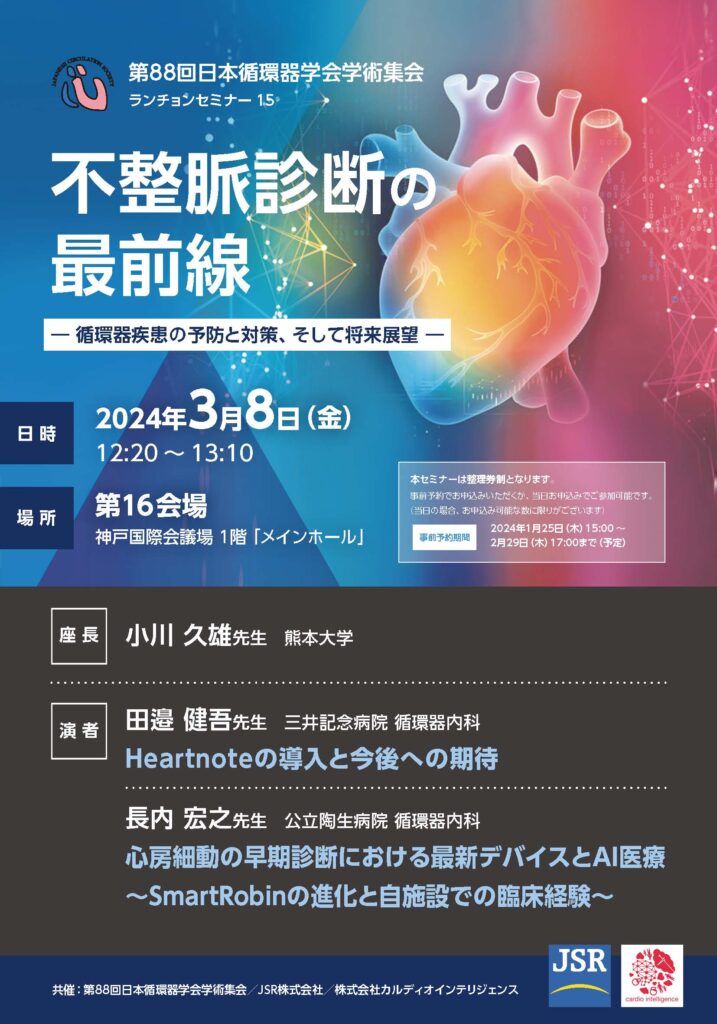 2024年3月8日(金)~10日(日)に神戸コンベンションセンターにおいて開催される、「第88回日本循環器学会学術集会」に参加いたします。