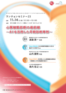 | 講演2: | 公立陶生病院の長内宏之先生より、新製品の発作性心房細動兆候検出AI『SmartPAFin』を活用した、隠れ心房細動の早期発見を目的とした開業医との取り組みについてご講演いただきます。 |