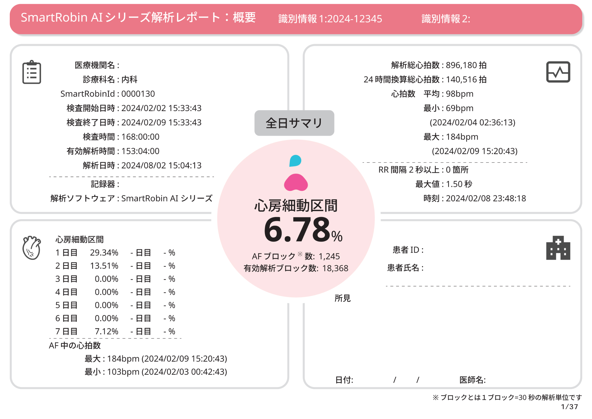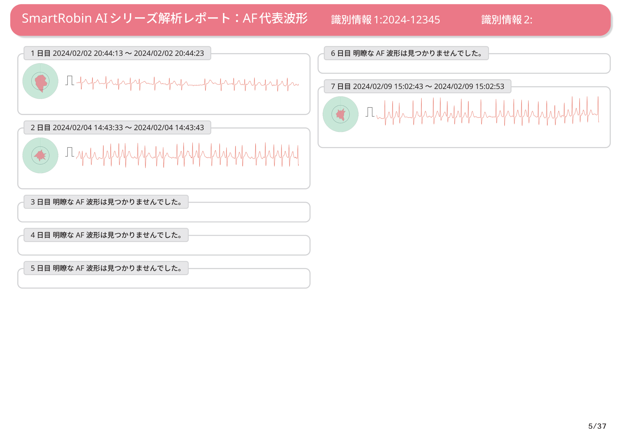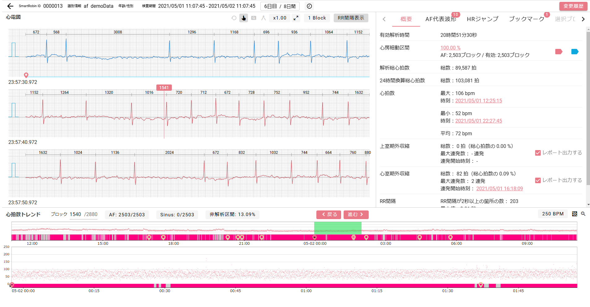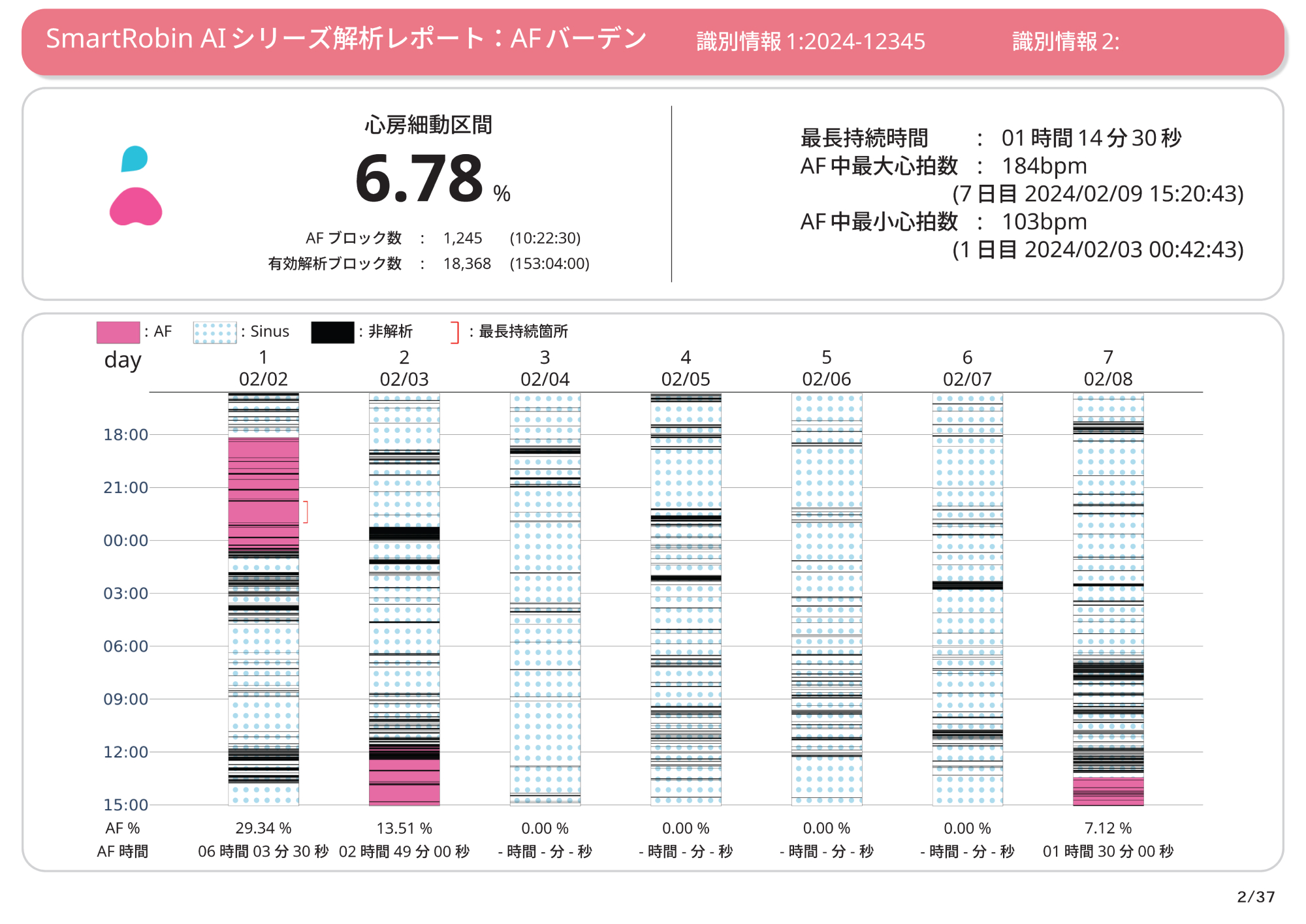 - 検査全日および日毎の心房細動割合を一目で確認可能